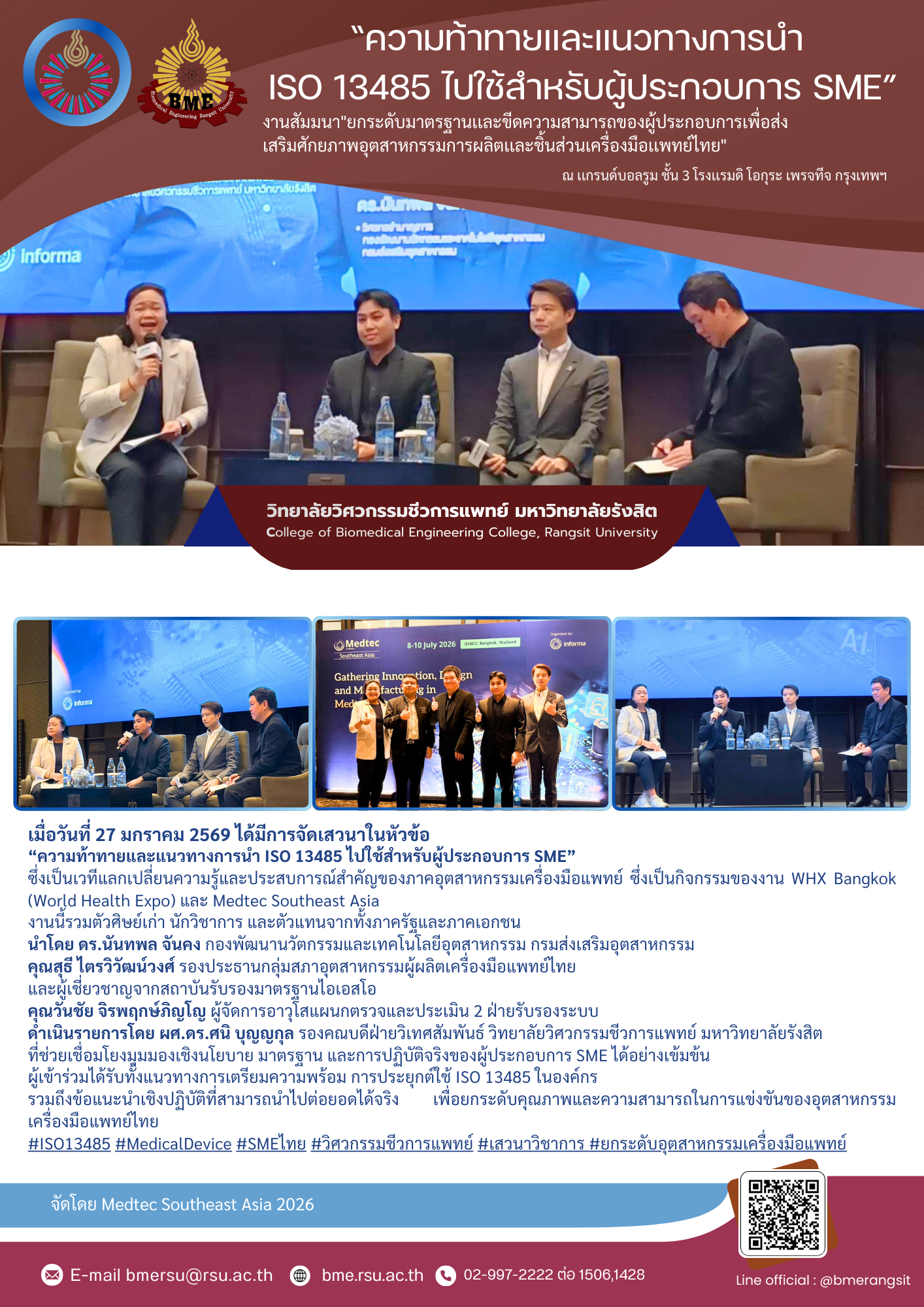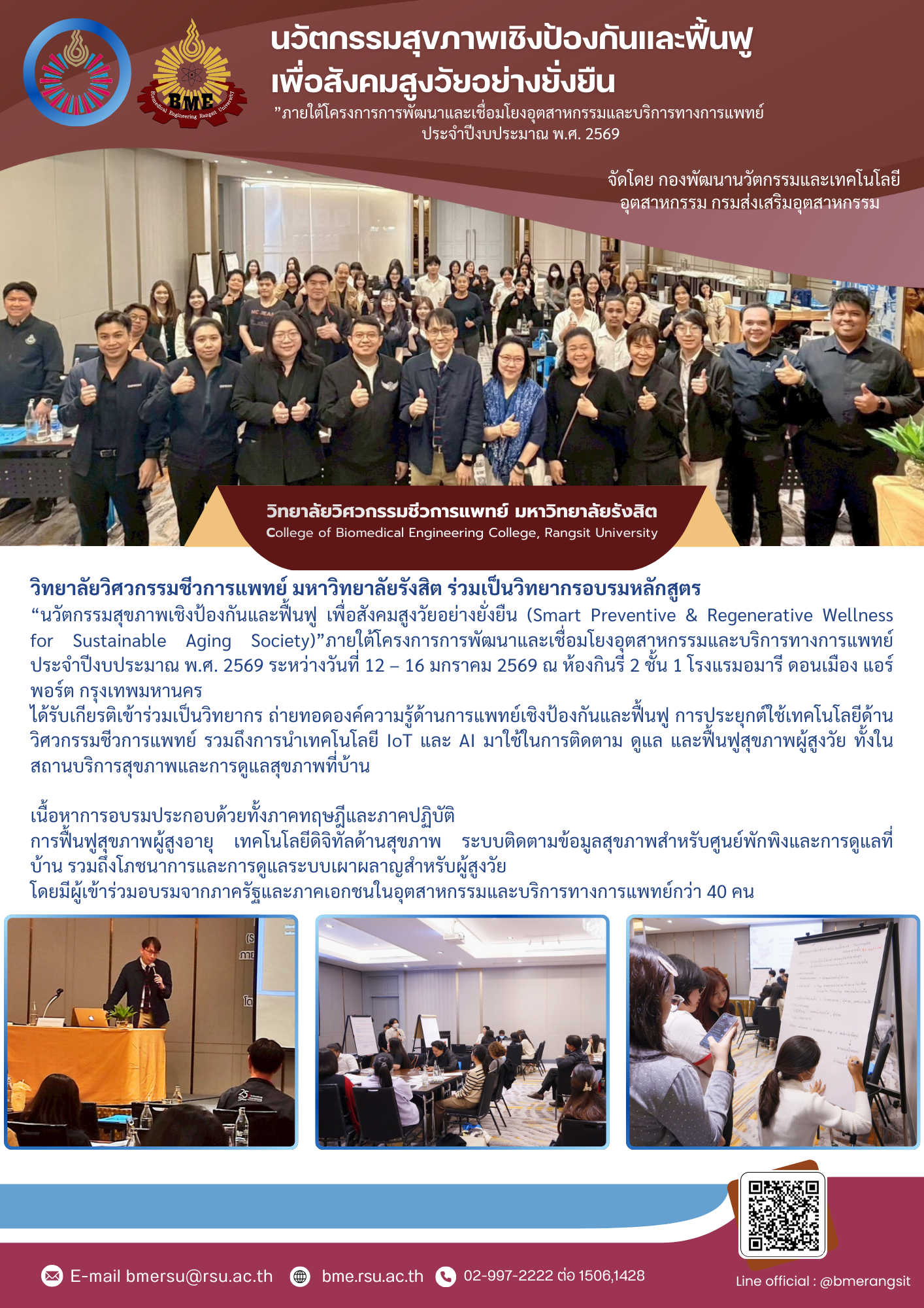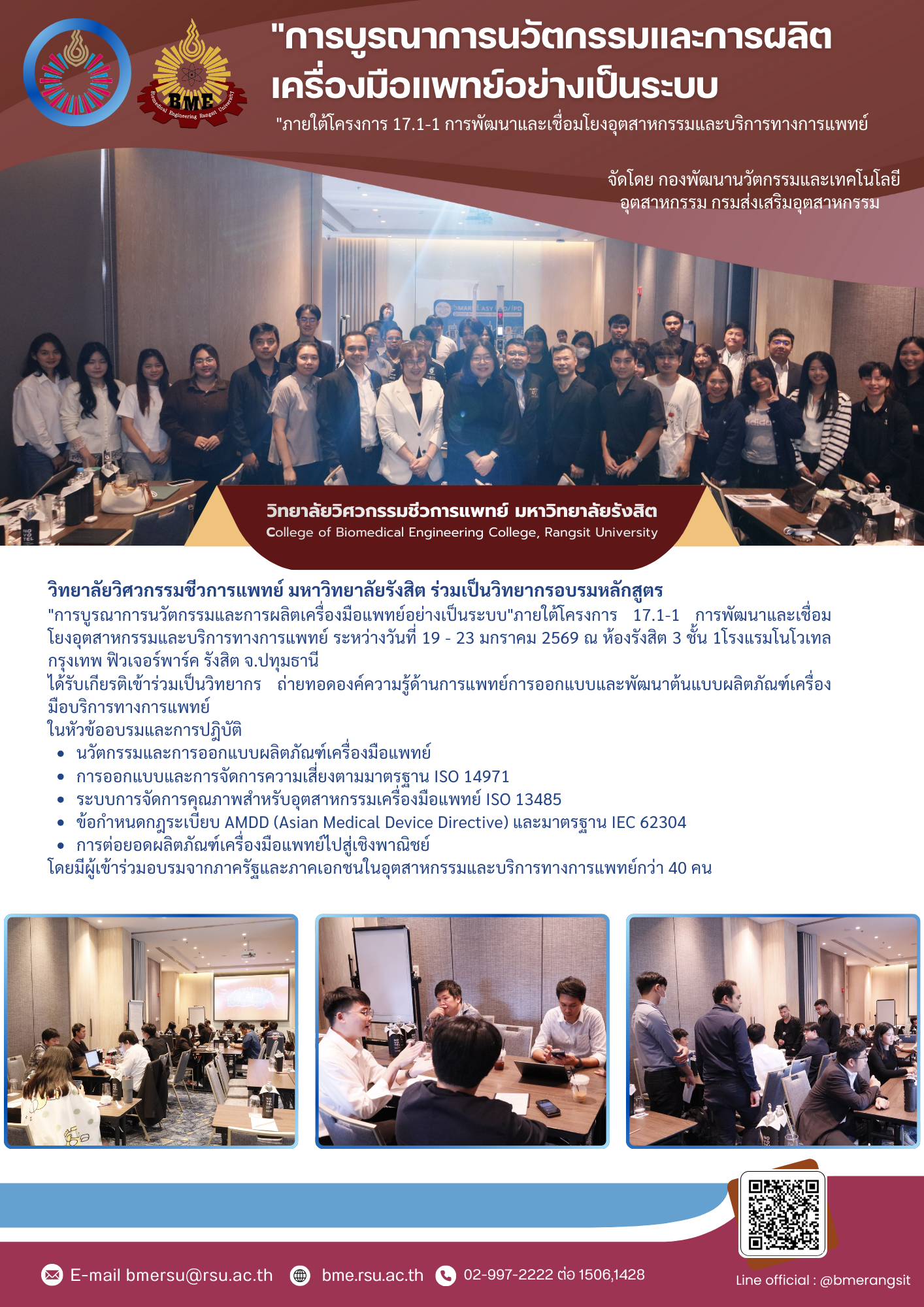 วิทยาลัยวิศวกรรมชีวการแพทย์ มหาวิทยาลัยรังสิต จัดโครงการฝึกอบรมเชิงปฏิบัติการ