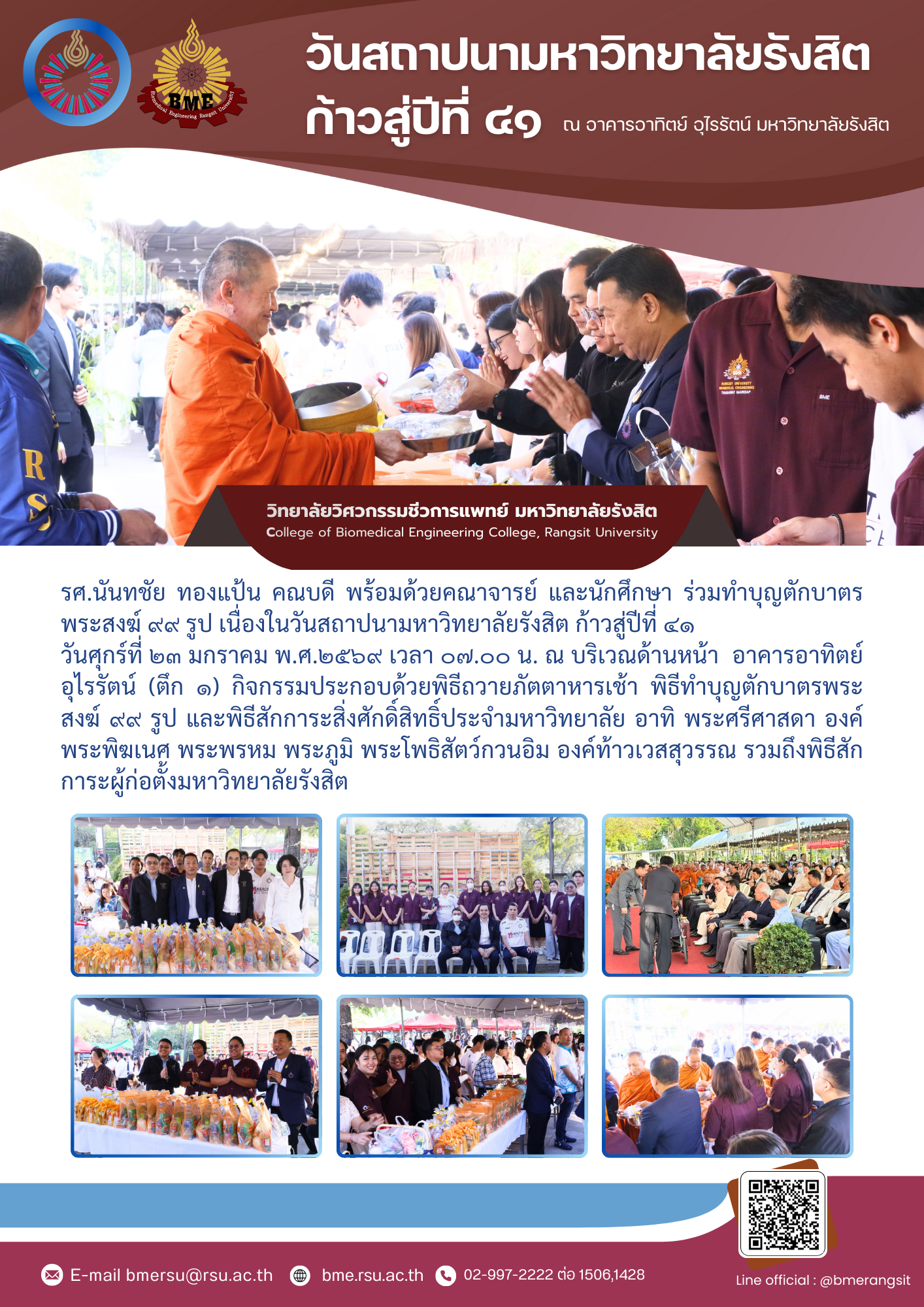 กิจกรรมปฐมนิเทศ แบ่งปันประสบการณ์ และพบสัมพันธ์ศิษย์เก่า ระดับบัณฑิตศึกษา วิทยาลัยวิศวกรรมชีวการแพทย์ มหาวิทยาลัยรังสิต