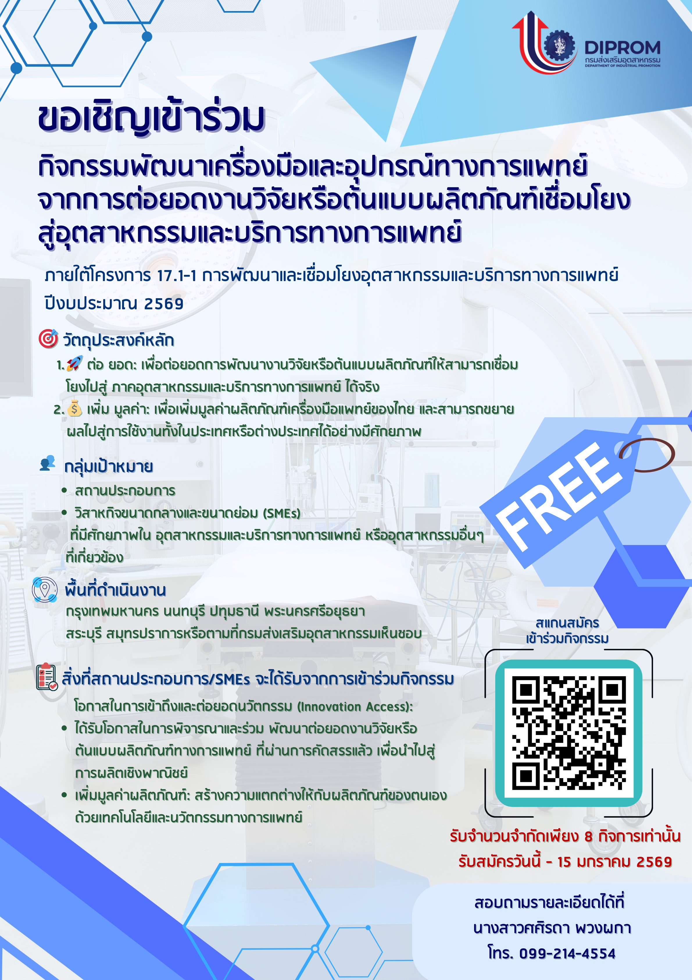 | จกรรมพัฒนาต้นแบบผลัตภัณฑ์ทางการแพทย์เพื่อเชื่มโยงสู่ภาคอุตสาหกรรมและการบริการ อ่านเพิ่มเติม |